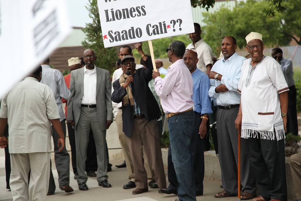 It was completely dark by the time Somali president Hassan Sheikh Mohamud arrived at Northrop Auditorium on the University of Minnesota campus on Aug. 9. But the lack of light didn’t stop protesters, many of whom had been demonstrating for hours, from rushing to the curb and chanting “Down, Hassan, down!” as the president arrived.