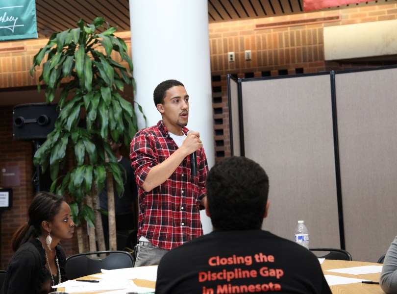 IMG_0288 January 28, 2014 5044 × 3741 IMG_0288 Malika Musa (seated) and Jeron Mariani (standing) at the Solutions Not Suspensions Youth Summit at the University of Minnesota, May 11, 2013.